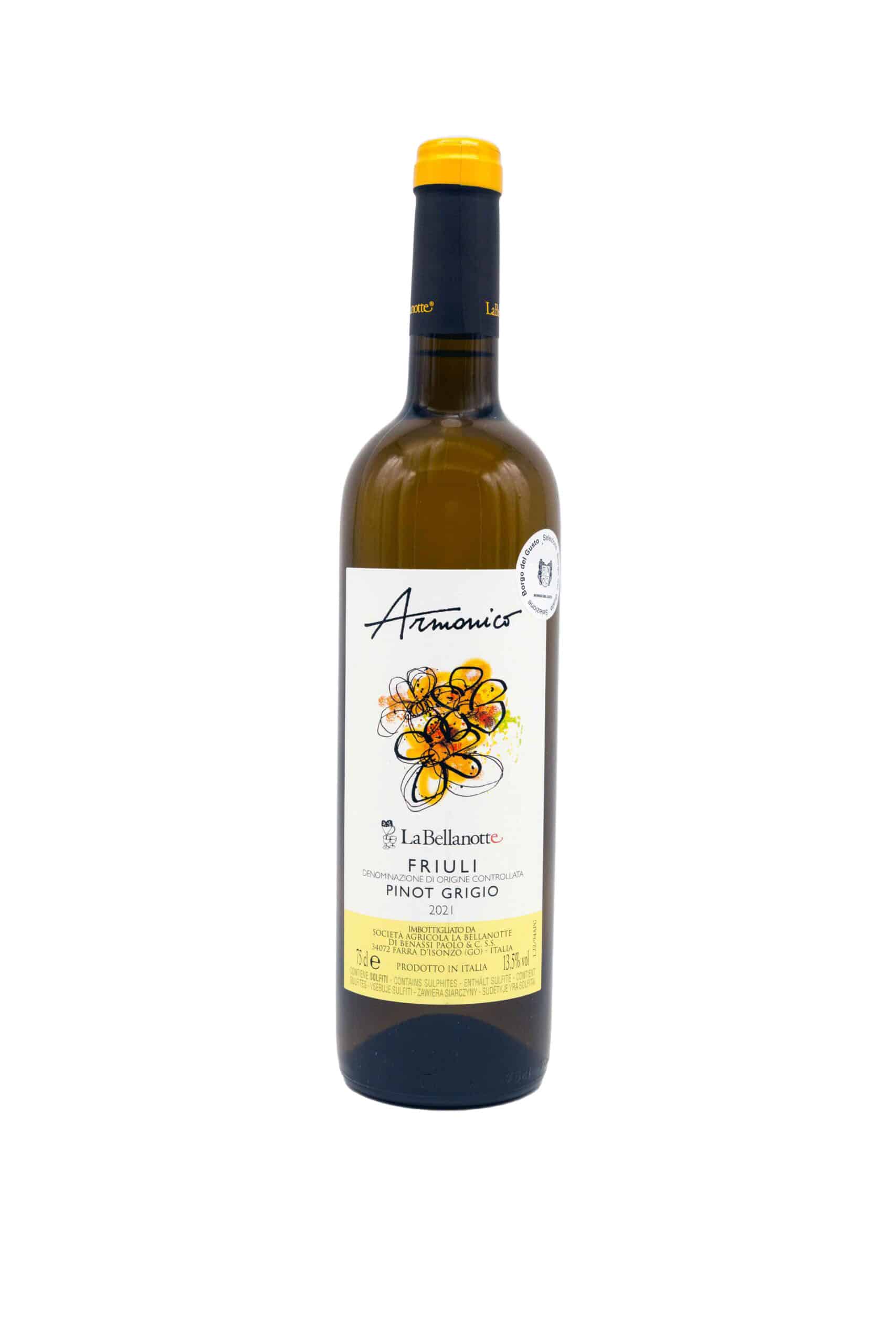 Il vino friulano DOC Armonico bianco Pinot grigio deve le sue note fresche al terreno di tipo calcareo da cui proviene: situate ad un’altitudine di 50/100 mt sul lm, le viti subiscono significative escursioni termiche dal giorno alla notte.